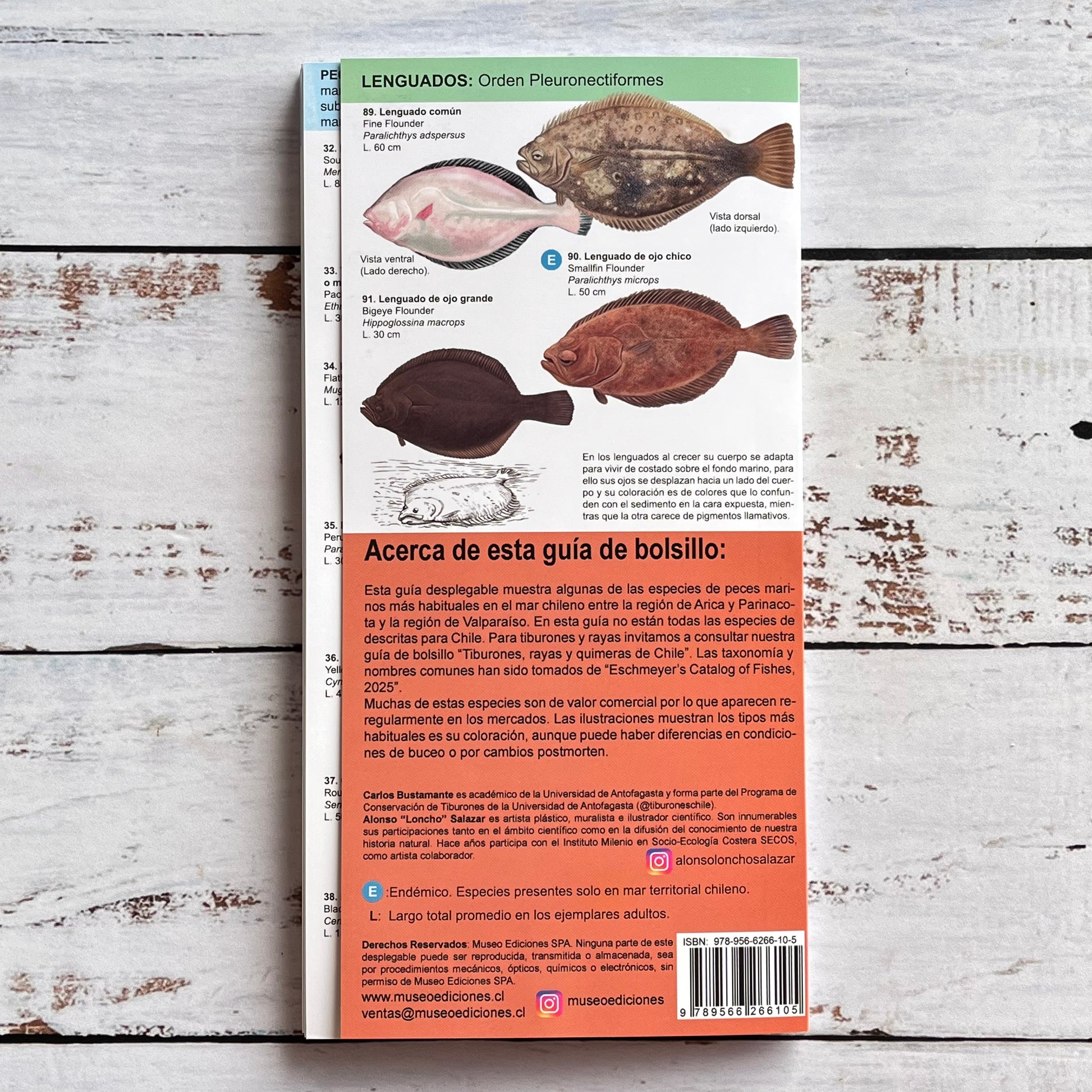 Esta guía desplegable muestra algunas de las especies de peces marinos mas habituales en el mar chileno entre la región de Arica y Parinacota y la región de Valparaíso. No están todas las especies descritas para Chile.
